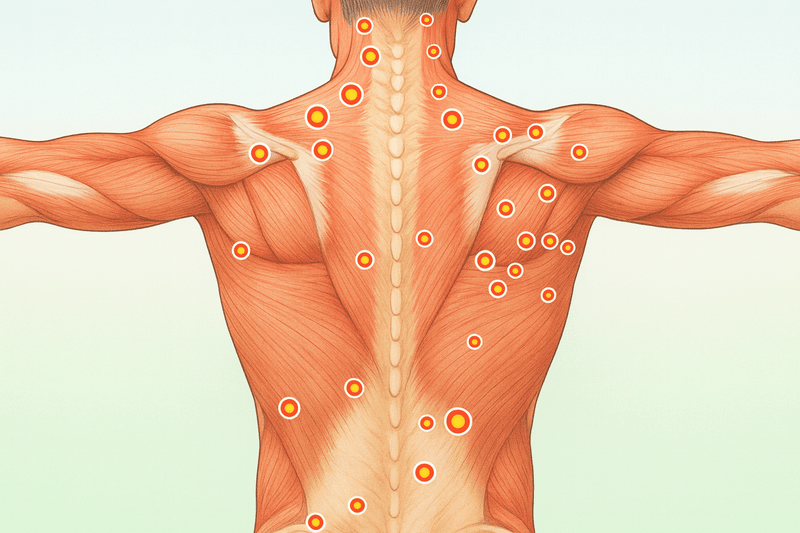 - Dor muscular persistente, especialmente no pescoço, costas, ombros e quadris;